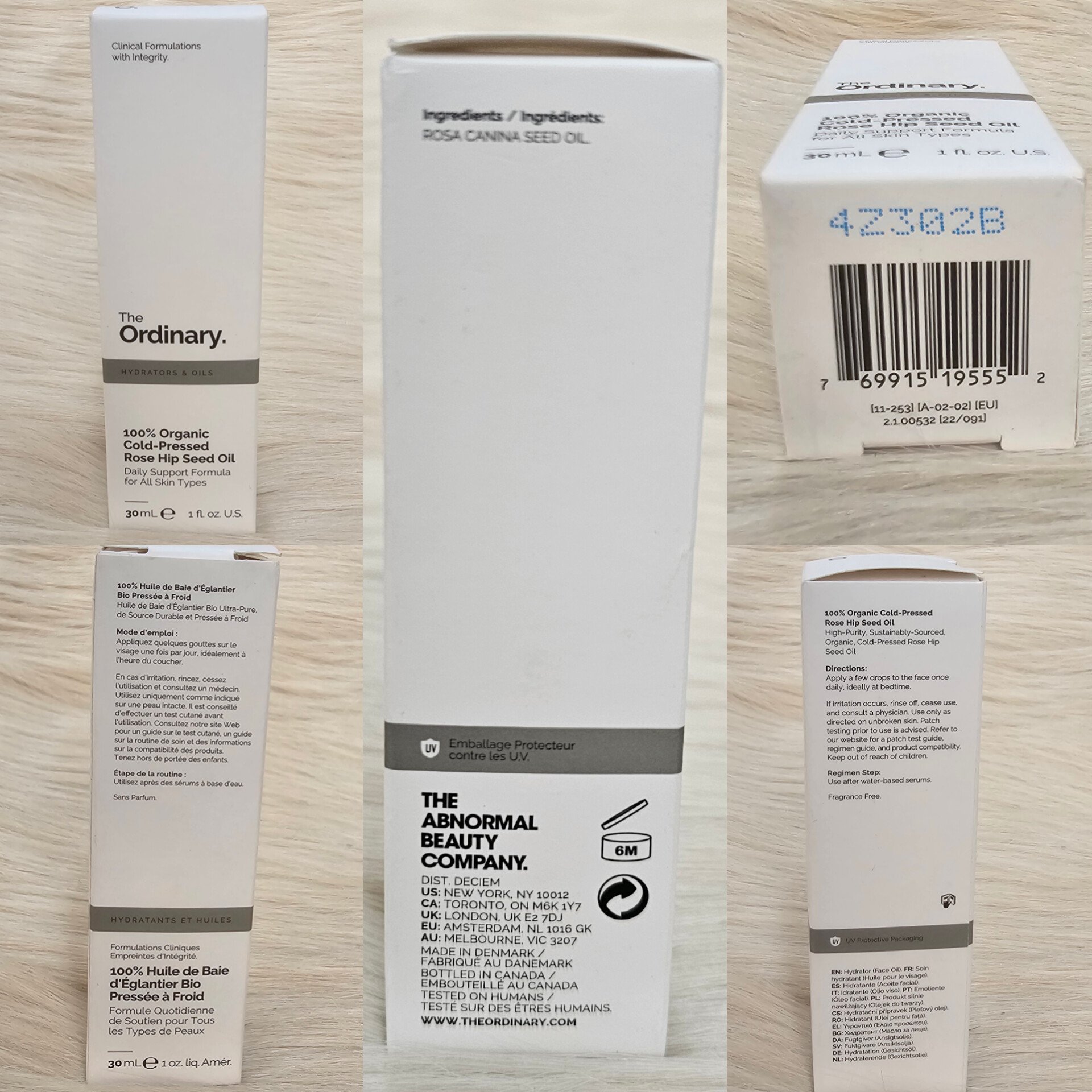 USA ආනයනය කරන ලද The Ordinary Packaging වල බොහෝ විට ඉංග්රීරීසි භාෂාවෙන් පමණක් නිෂ්පාදනයේ තොරතුරු සඳහන් කර ඇති අතරින් ආනයනික අනෙකුත් රටවල් වල නිෂ්පාදනය ඇසුරුමෙහි ඉංග්රීසි භාෂාවට අමතරව අදාළ රටේ භාවිතා වන භාෂාවෙන් ද නිෂ්පාදනයේ තොරතුරු සඳහන් කර තිබෙනවා.