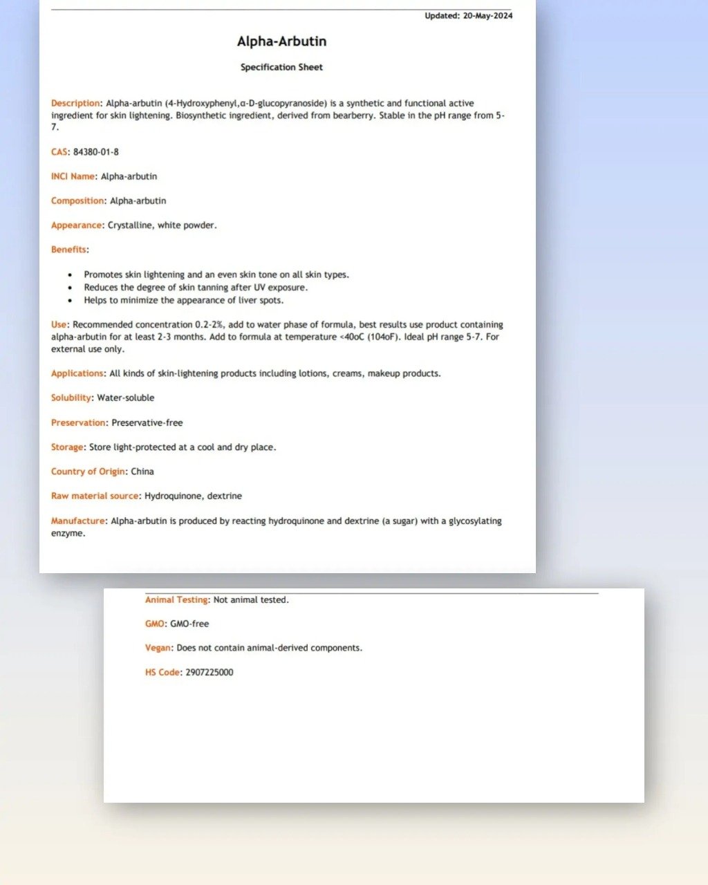 Alpha Arbutin (2%) – Targets melanin to fade stubborn pigmentation.