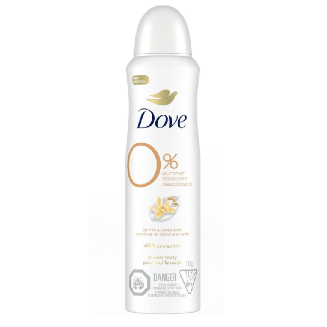 Dove 0% Aluminum Free Deodorant Spray, for 72H Protection, Oat Milk & Vanilla Scent, 113 g