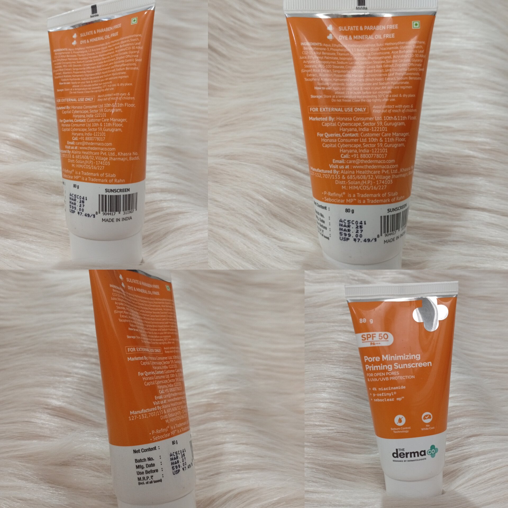 The Derma Co . Pore Minimizing Priming All Skin Type Sunscreen With Spf 50 & Pa+++ 80g